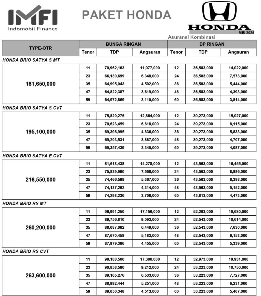 Berikut adalah informasi mengenai harga dan promo Honda Brio di Yogyakarta Juni 2025: